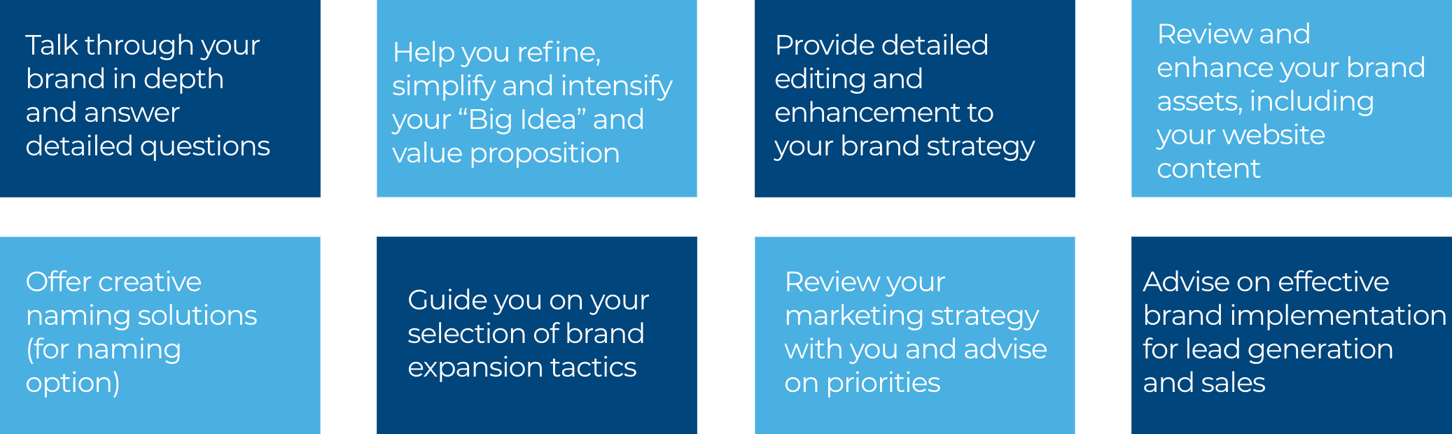 "Brand Master AI gave me a complete brand platform and helped me develop a company name that I love. The brand it provided has everything I need to advance my marketing: a compelling ‘big idea’, a well-defined brand personality, and all the key messages I want to promote. Working with the BMA consultant on my company's branding was a lot of fun and educational. He brought so much knowledge and expertise to the project. I highly recommend Brand Master AI to anyone that's in the process of developing their company's brand."